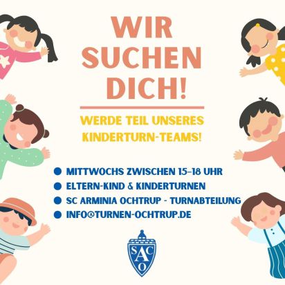 Die Abteilung Turnen des SC Arminia Ochtrup sucht motivierte Unterstützung für das Kinderturnen!